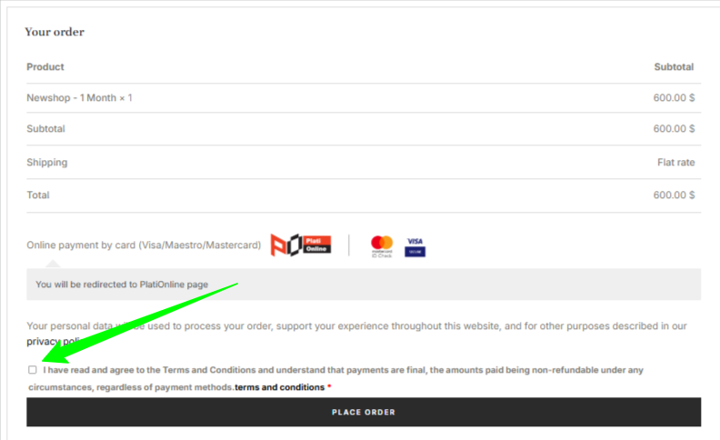 If payment is done through a payment link, the checkbox is not required, but the no-refund policy applies.